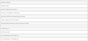 Base Plate is used in conjunction with the Adapters